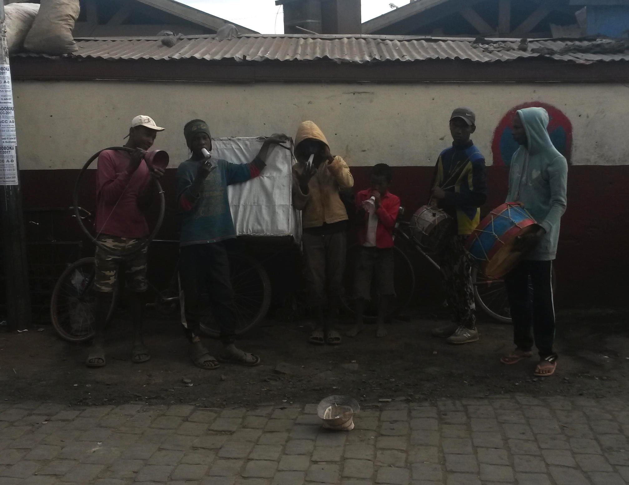 Malagasy street musicians playing with homemade instruments. I love the trumpet made out of hosepipe and a funnel